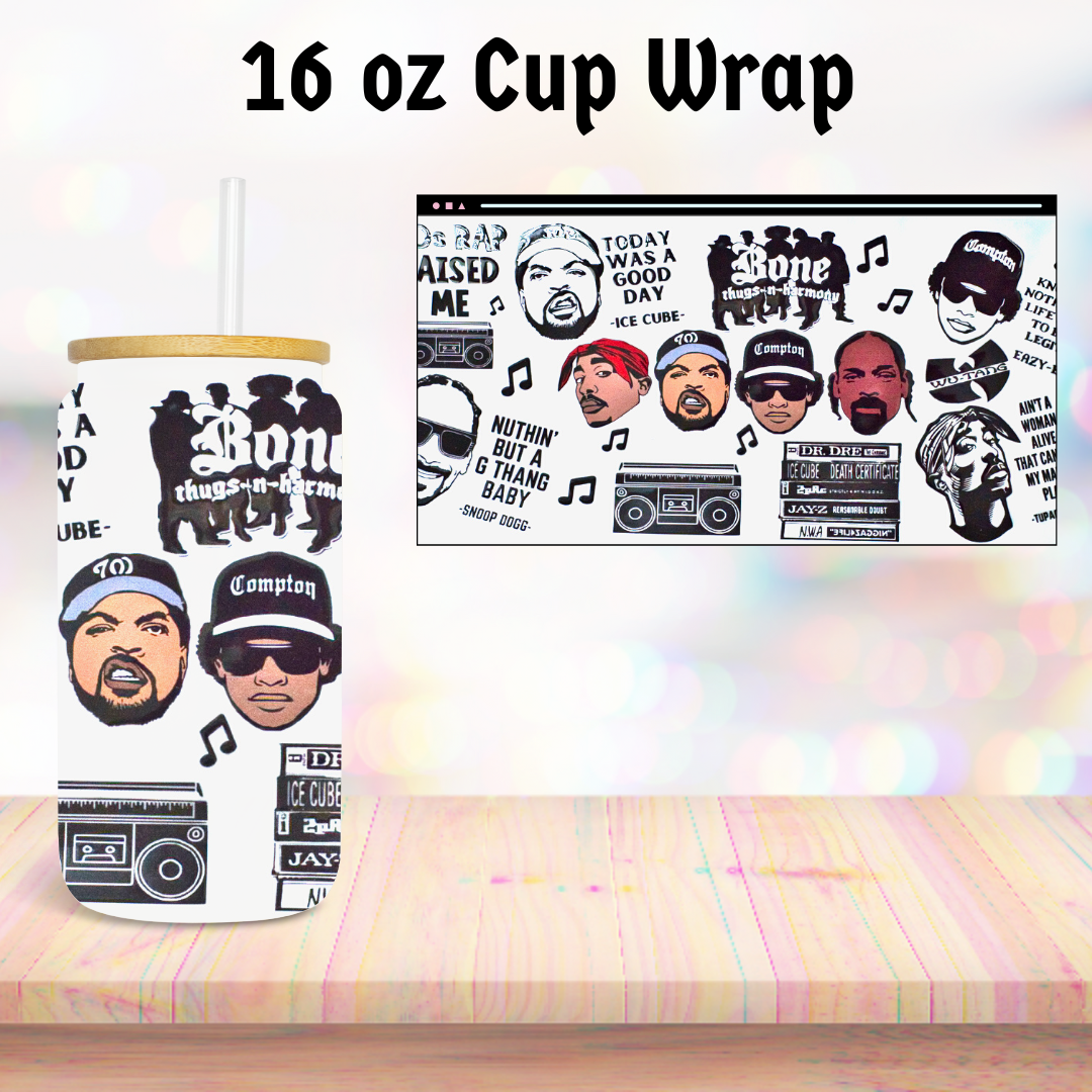 Introducing our 90's Rap 16oz UV DTF Cup Wrap - the perfect blend of style, durability, and versatility for your favorite beverages! Specially crafted to fit 16oz glass cans, this innovative cup wrap is designed to elevate your drinking experience to new heights.