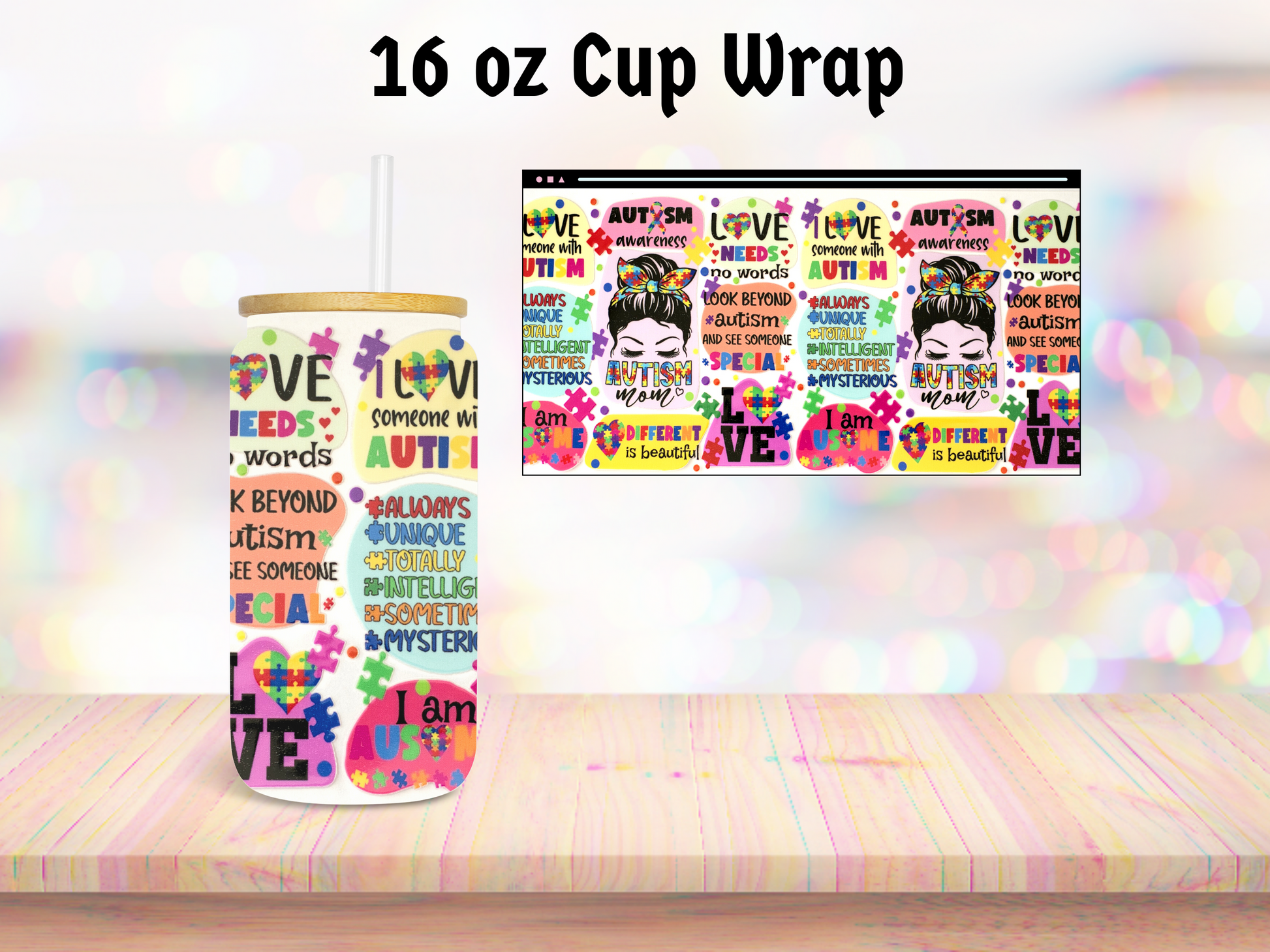 Introducing our Autism Awareness 16oz UV DTF Cup Wrap - the perfect blend of style, durability, and versatility for your favorite beverages! Specially crafted to fit 16oz glass cans, this innovative cup wrap is designed to elevate your drinking experience to new heights.