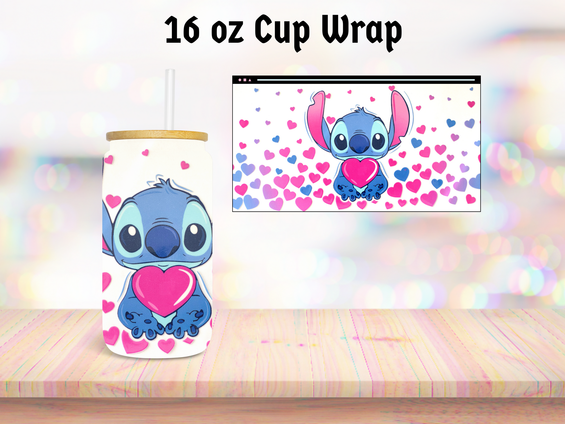 Introducing our Blue Character with Love 16oz UV DTF Cup Wrap - the perfect blend of style, durability, and versatility for your favorite beverages! Specially crafted to fit 16oz glass cans, this innovative cup wrap is designed to elevate your drinking experience to new heights.