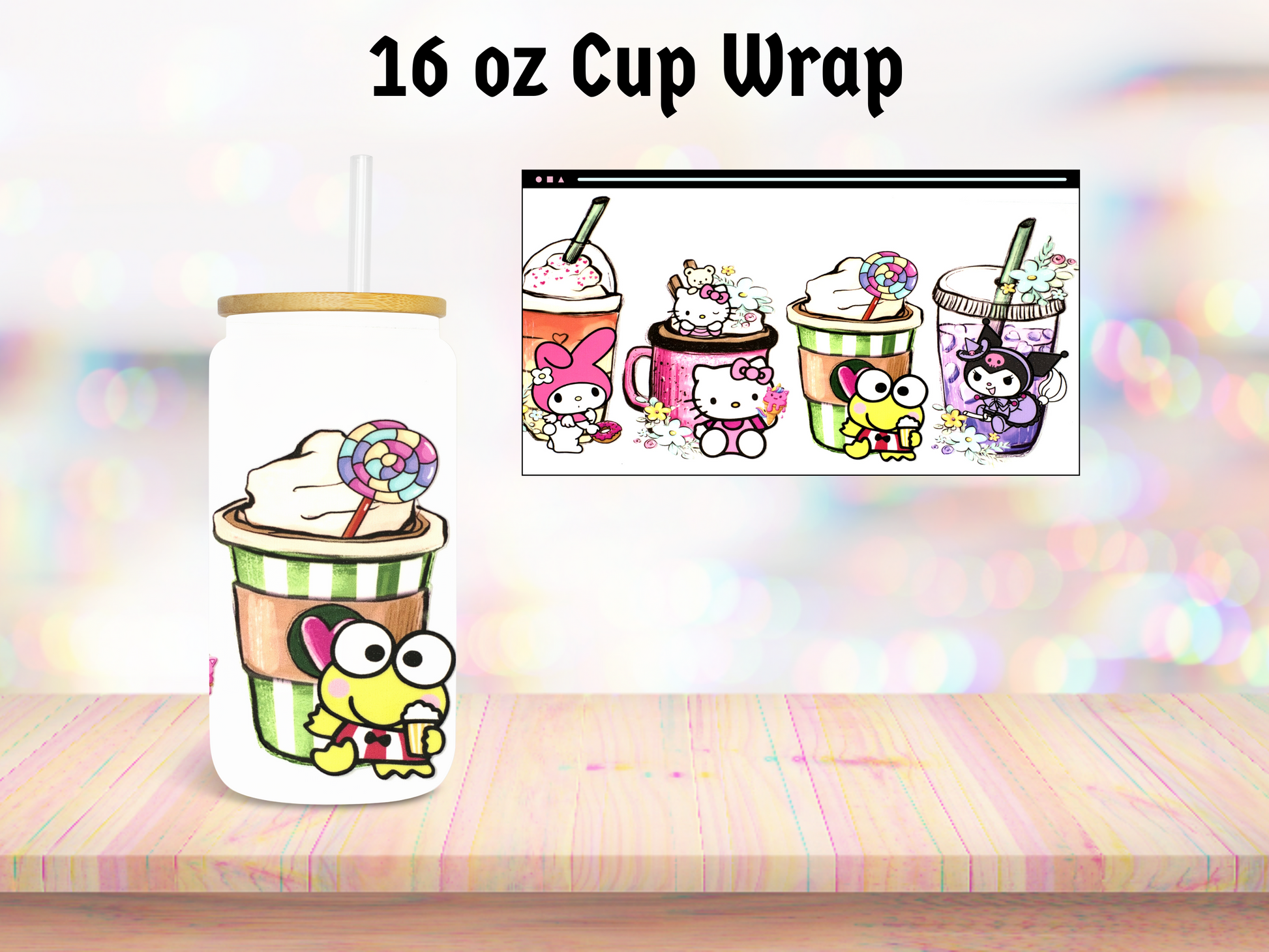 Cat Friends in Coffee Cups 16oz Cup Wrap