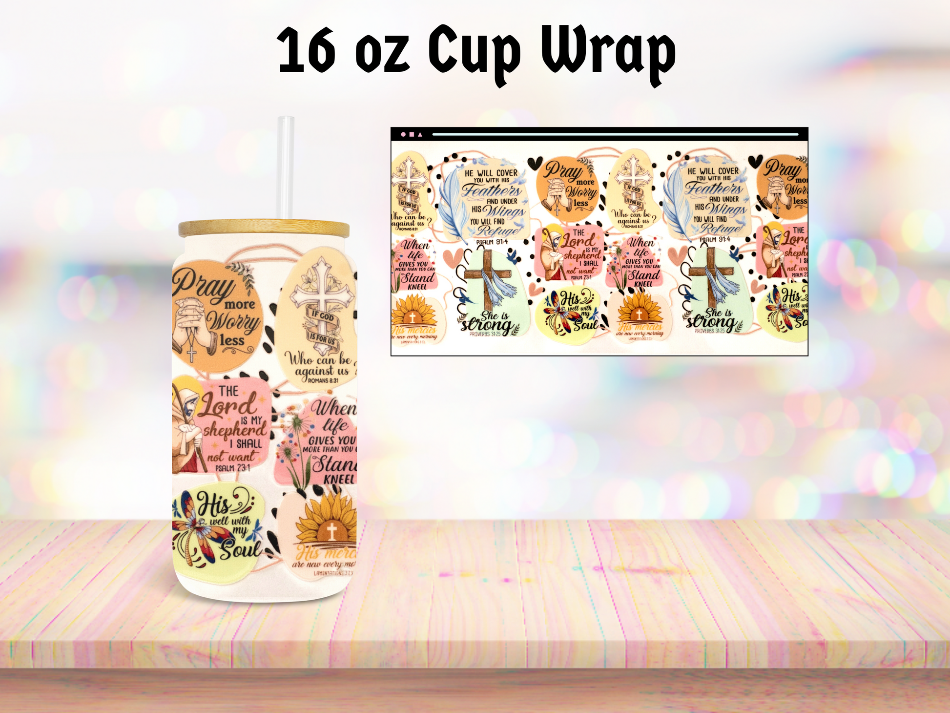 Introducing our Faith 16oz UV DTF Cup Wrap - the perfect blend of style, durability, and versatility for your favorite beverages! Specially crafted to fit 16oz glass cans, this innovative cup wrap is designed to elevate your drinking experience to new heights.