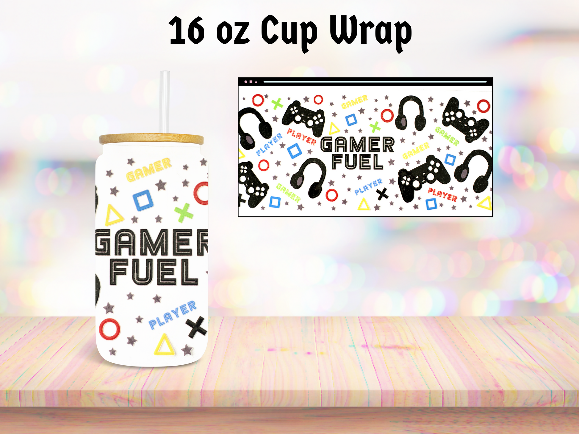 Introducing our Gamer Fuel 16oz UV DTF Cup Wrap - the perfect blend of style, durability, and versatility for your favorite beverages! Specially crafted to fit 16oz glass cans, this innovative cup wrap is designed to elevate your drinking experience to new heights.