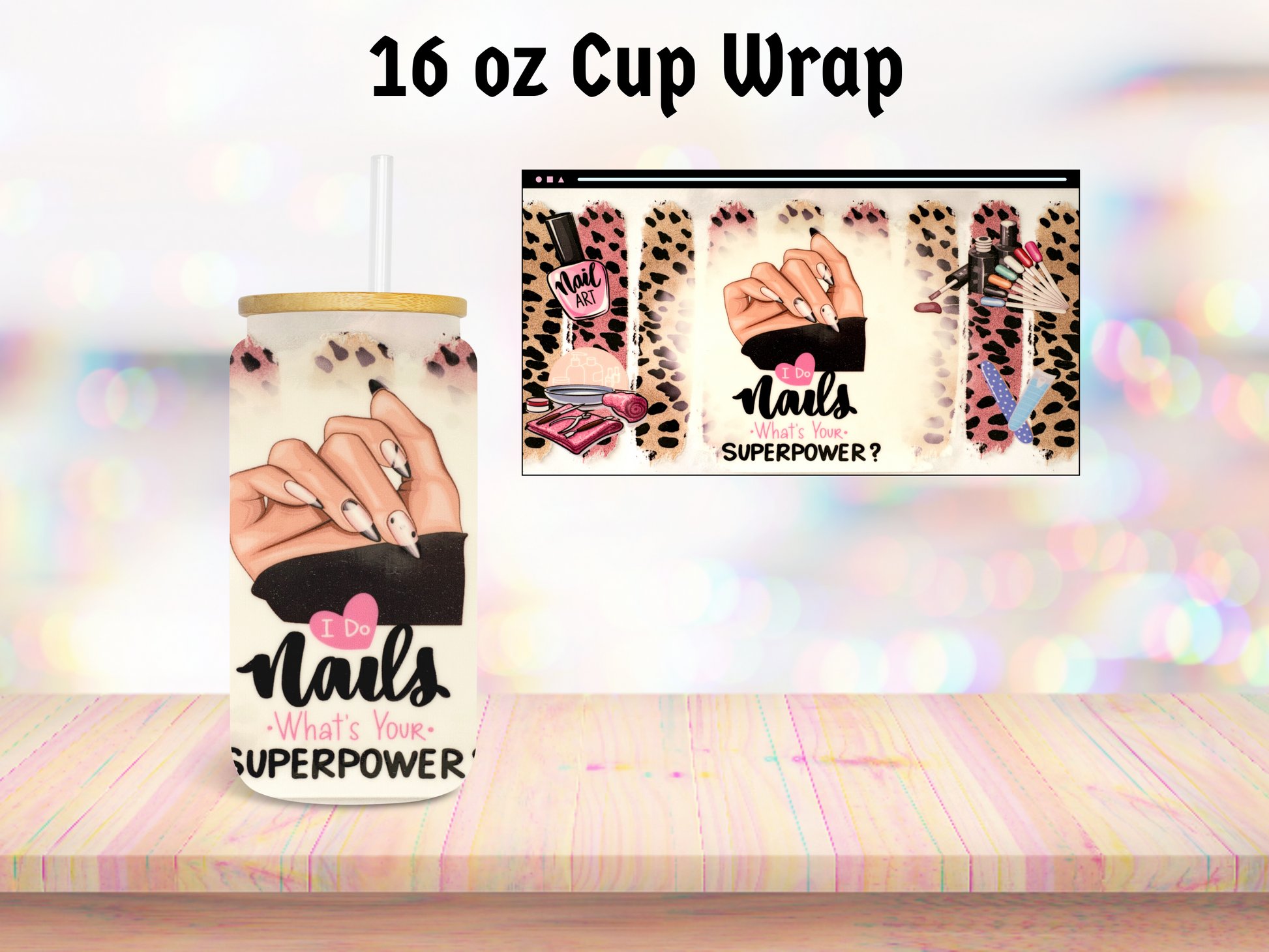 Introducing our I Do Nails 16oz UV DTF Cup Wrap - the perfect blend of style, durability, and versatility for your favorite beverages! Specially crafted to fit 16oz glass cans, this innovative cup wrap is designed to elevate your drinking experience to new heights.