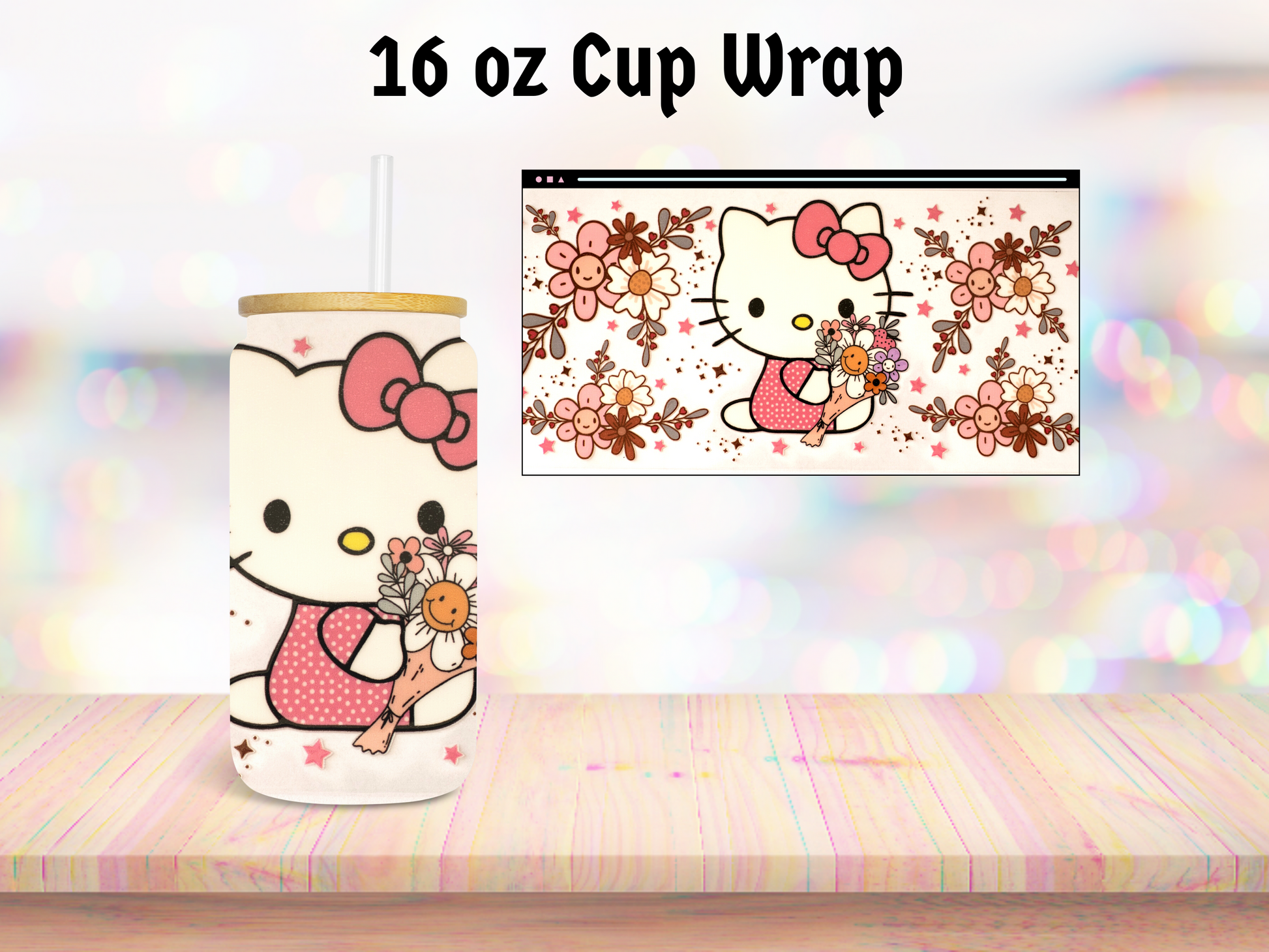 Introducing our Pink Kitty Flowered 16oz UV DTF Cup Wrap - the perfect blend of style, durability, and versatility for your favorite beverages! Specially crafted to fit 16oz glass cans, this innovative cup wrap is designed to elevate your drinking experience to new heights.