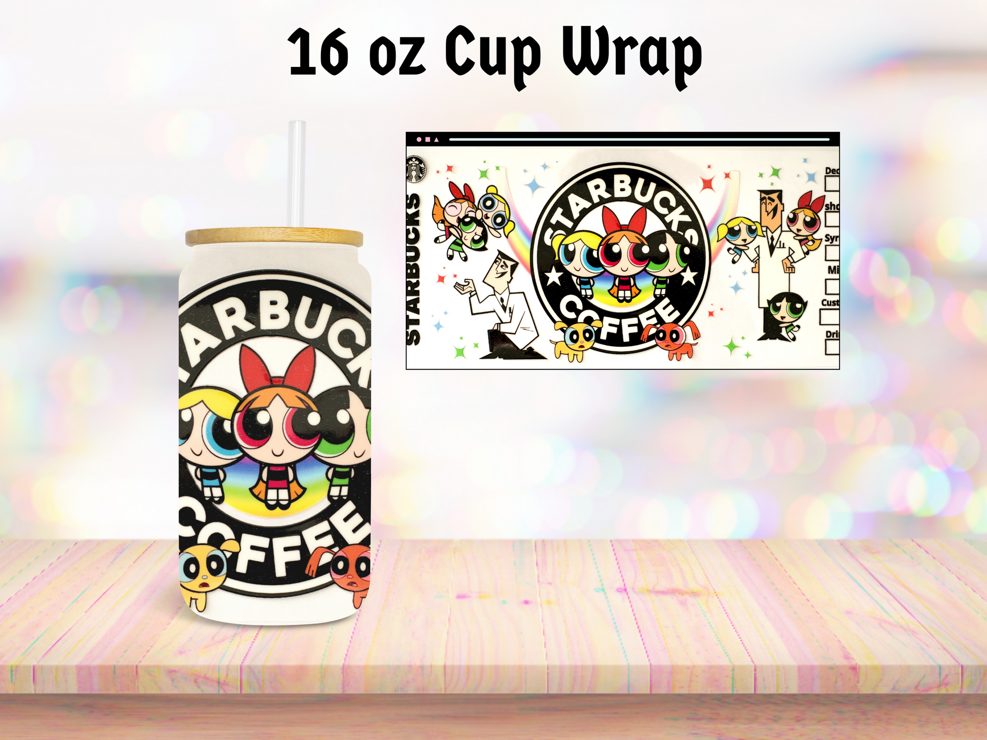 Introducing our Power Girls Starbs 16oz UV DTF Cup Wrap - the perfect blend of style, durability, and versatility for your favorite beverages! Specially crafted to fit 16oz glass cans, this innovative cup wrap is designed to elevate your drinking experience to new heights.