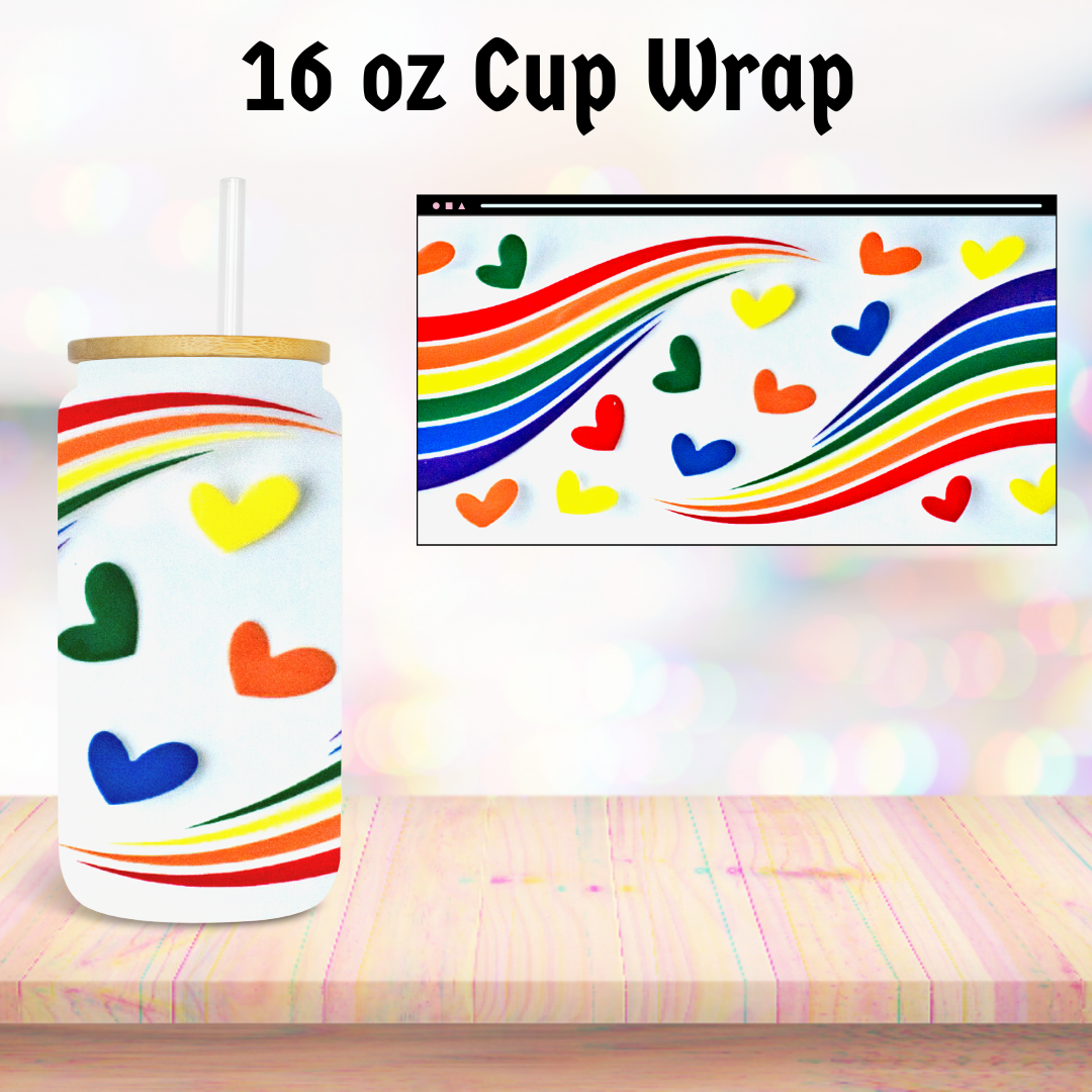 Introducing our Rainbow Love 16oz UV DTF Cup Wrap - the perfect blend of style, durability, and versatility for your favorite beverages! Specially crafted to fit 16oz glass cans, this innovative cup wrap is designed to elevate your drinking experience to new heights.