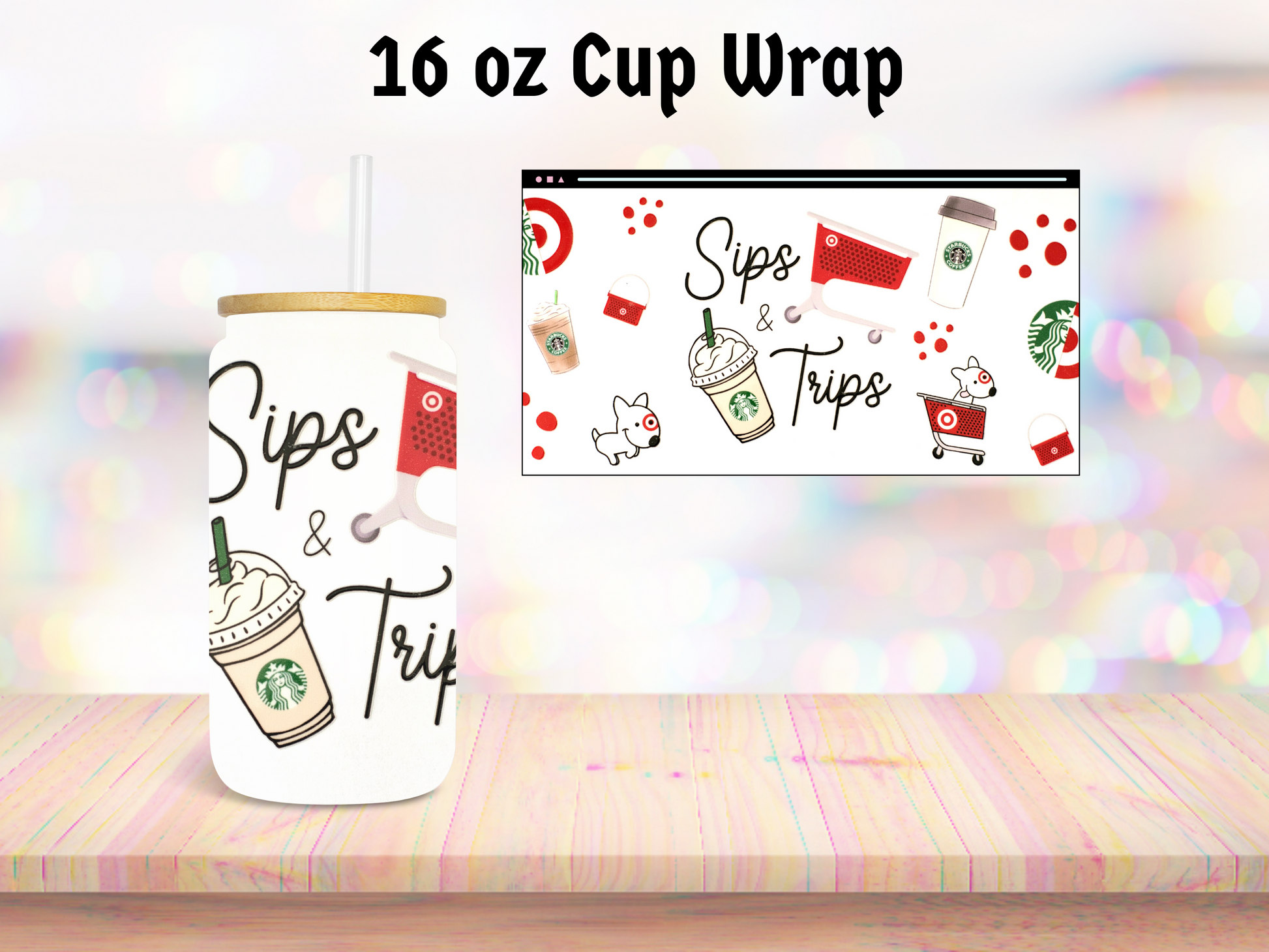 Introducing our Sips and Trips 16oz UV DTF Cup Wrap - the perfect blend of style, durability, and versatility for your favorite beverages! Specially crafted to fit 16oz glass cans, this innovative cup wrap is designed to elevate your drinking experience to new heights.