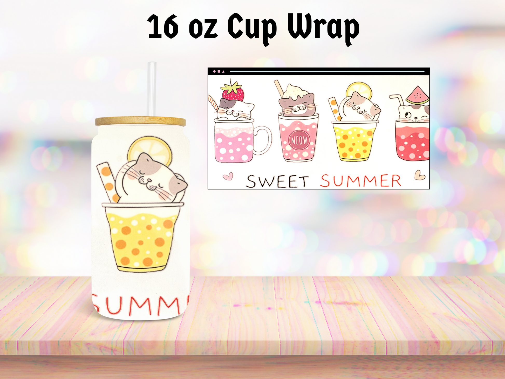 Introducing our Sweet Summer 16oz UV DTF Cup Wrap - the perfect blend of style, durability, and versatility for your favorite beverages! Specially crafted to fit 16oz glass cans, this innovative cup wrap is designed to elevate your drinking experience to new heights.