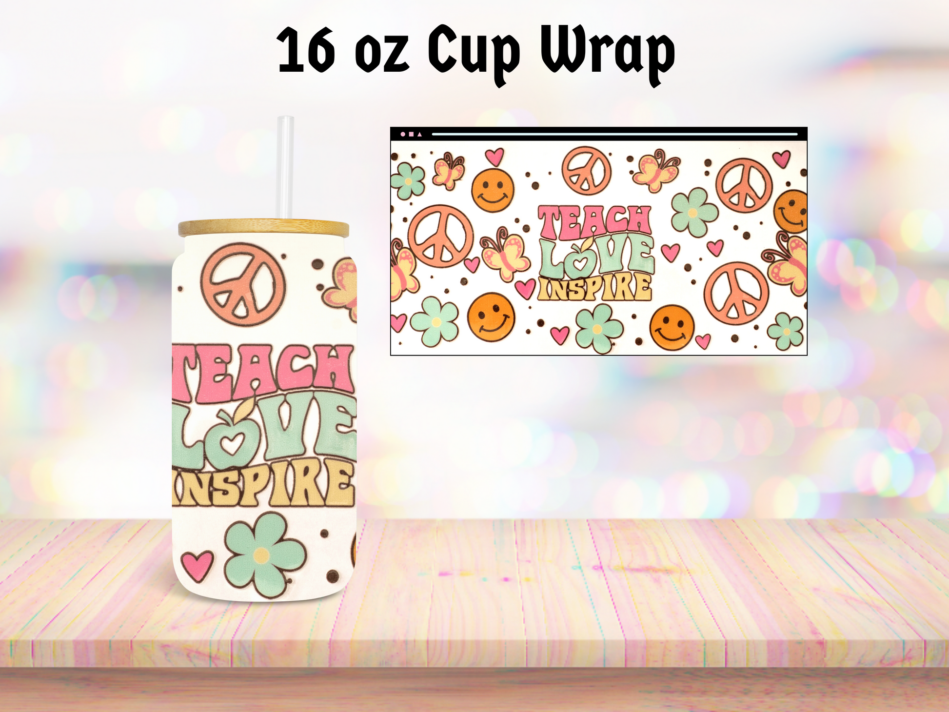 Introducing our Teach Love 16oz UV DTF Cup Wrap - the perfect blend of style, durability, and versatility for your favorite beverages! Specially crafted to fit 16oz glass cans, this innovative cup wrap is designed to elevate your drinking experience to new heights.